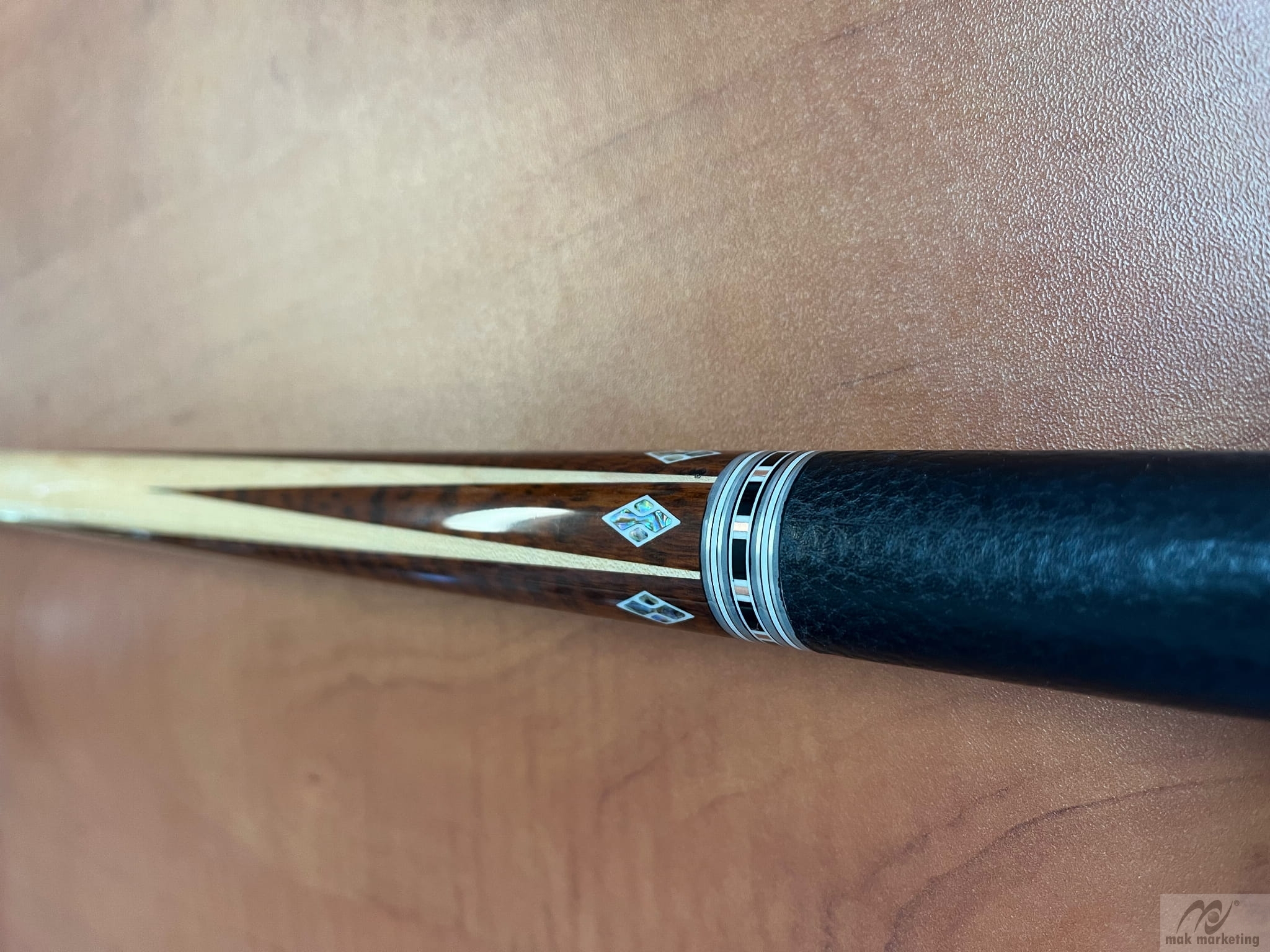 Kij dla profesjonalnego konesera z wklejkami z masy perłowej i szczytówką Cue Lee's.