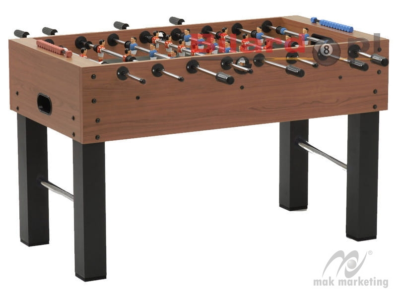 Stolik piłkarski Garlando F 5 to ciekawa propozycja dla rodzinnych rozgrywek. Obudowa wykonana z 16 mm MDF-u (kolor : wiśnia) wraz nogami (9 x 9 cm) wzmacnionymi drążkami (chrom, 38 mm).